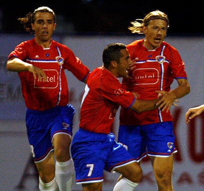 שחקני מכבי חיפה חוגגים שער של דבאלישווילי (רויטרס)