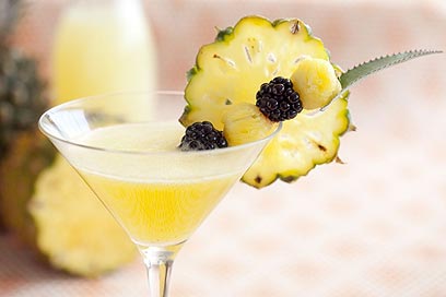 - מערבלים בבלנדר את כל המרכיבים פרט לפטל השחור, מוזגים לכוס ומקשטים.