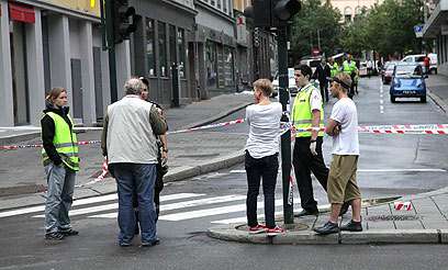 שוטרים סמוך לזירת הפיצוץ באוסלו (צילום: עינב ברזני)