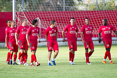 שחקני הפועל ת"א באימון (צילום: טל שחר)