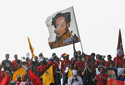 תומכיו של צ'אבס עם דגל שעליו דמותו של בוליבר (צילום: AFP)