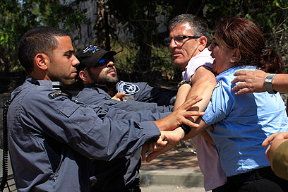 הפינוי היום. "פתאום יש מספיק שוטרים?" (צילום: צפריר אביוב)