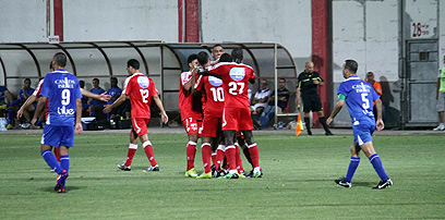שחקני בני סכנין חוגגים (צילום: זהר שחר)
