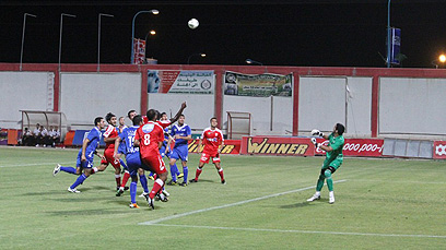 דקה ראשונה: שמעון אבוחצירה בעט כדור מסוכן, השוער מוחמד קנדיל עצר.