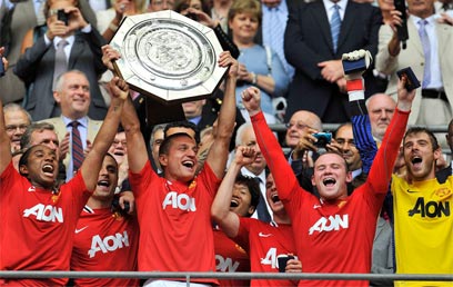 מנצ'סטר יונייטד פתחה את העונה באנגליה עם 2:3 ענק על מנצ'סטר סיטי בוומבלי, וזכתה במגן הקהילה. סיטי כבר הוליכה 0:2, אבל יונייטד השלימה מהפך במחצית השנייה עם שער ניצחון של נאני בדקה ה-93. בארבע השנים האחרונות, הקבוצה שקטפה את מגן הקהילה האנגלי, הייתה גם זו שזכתה באליפות בתום העונה, סימן מעודד לאלכס פרגוסון.