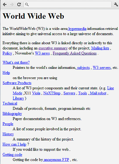 "הרשת היא יוזמה לאיתור וקבלת מידע, שמטרתה לתת גישה אחידה לייקום שלם של מסמכים", נכתב העמוד הרשת שפורסם לפני 20 שנה, ובו ניתנו קישורים למסמכים בודדים שעוסקים בנושא הקמת הרשת. שנתיים לפני כן טים ברנרנס לי, פיזיקאי שחקר במרכז האירופי למחקר גרעיני (CERN), שלח הצעה לרכז מידע בצורה חכמה יותר באמצעות האינטרנט ושימוש בקישורים (היפר לינקים) בין מסמך למסמך. כך יוכלו הפיזיקאים במרכז לחלוק ביניהם את המידע שאספו ולנווט בו. הרשת הייתה מבוססת על מחשב ה-NeXT - שאותו פיתח סטיב ג'ובס שבדיוק נפרד מהחברה שהקים באותה תקופה, אפל.