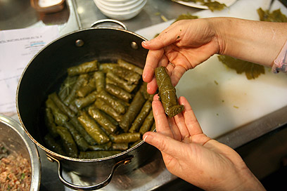 למלא, לקפל ולגלגל - עלי גפן ממולאים, חלק מהתפריט (צילום: תומריקו)