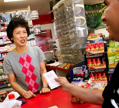 חנות המוכרת כרטיסי לוטו בעיירה בישופ, "הכל מלמעלה" (צילום: AP)