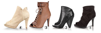 מאחר ואפשר לספור על כף יד אחת את הימים שבאמת מצריכים לבוש חם בחורף הישראלי, כדאי לכן לאמץ את מגפוני הפיפ טואו; הם גם לא חותכים את הרגל גבוה מדי ולכן תמיד יוצרים אשליה של אורך, ונוסף על כך האצבעות שמציצות (הפיפ טואו) מאווררות את כל העסק. בטח כבר סימנתן לעצמכן את מגפוני הפיפ טואו של ורסאצ'ה ומיו מיו, אבל לנו יש גם כמה הצעות קצת יותר זולות ונגישות.