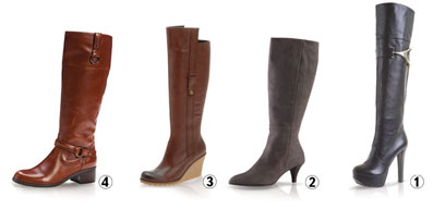 1.דיסקו רוסו, 1,299 שקל; 2. מקס מורטי, 1,290 שקל; 3. אלדו, 699 שקל; 4. המשביר לצרכן, 850 שקל