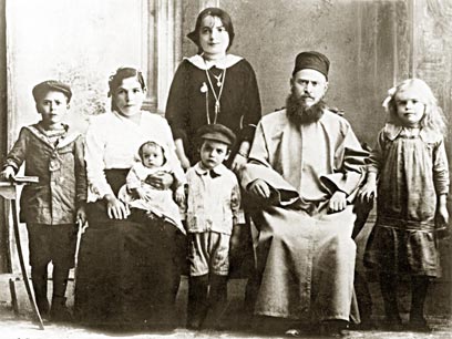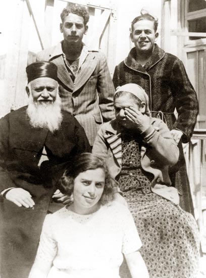 1. לאה וחיים אלבוחר וחמשת ילדיהם: מאחור עומדת וידה, מימין: אסתר, במרכז: חבקוק, יהודית (על ברכי אמה) ושלמה.