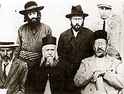 2. המורים בתלמוד תורה "דורש ציון". יושבים, מימין: הרב קסטל, הרב חיים אלבוחר, הרב ד"ר נ.מלצן. עומדים מאחור: הרב עזרא ציון מלמד, הרב כהן והמורה שרייבר.