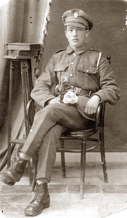 5. אליהו בכר, בן-דודה של יהודית, במדי הגדוד העברי. גויס ע"י זבוטינסקי בגיל 17, למד בבית ספר למל של רשת "עזרה".