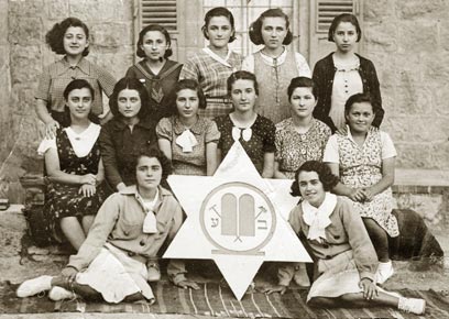 13. חברות בתנועת הנוער בני עקיבא. יהודית יושבת מימין לסמל.