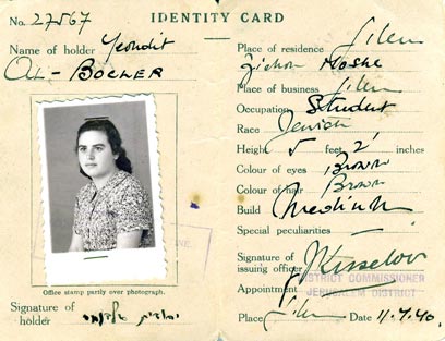15. ת.ז מנדטורית של יהודית אלבוחר, 1940.