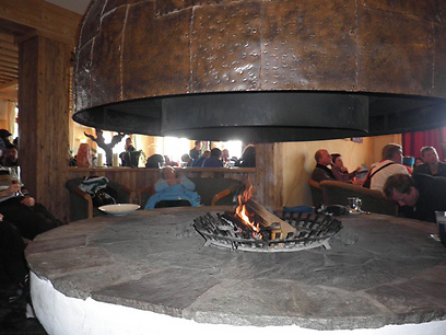 להתפנק ליד אח ב-Kristall Huette במאיירהופן (צילום: אביגיל שפי)