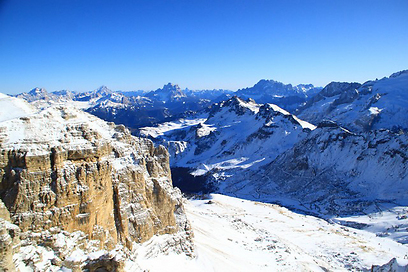 נוף מפסגת מסעדת Sass Pordoi בסלה רונדה (צילום: שחף מרמור)