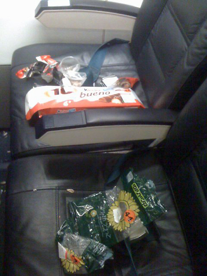 כך נראו שניים מהמושבים שבהם ישבו המתפרעים. הטיסה לקפריסין