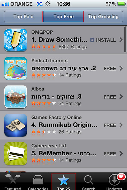 15. בחלק העליון של המסך לחצו על Top Free.