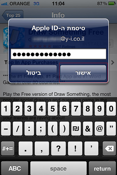17. יקפוץ חלון. כתבו בו את ה-Apple ID ואת הסיסמה שקבעתם בסעיף 7, ולחצו על אישור.