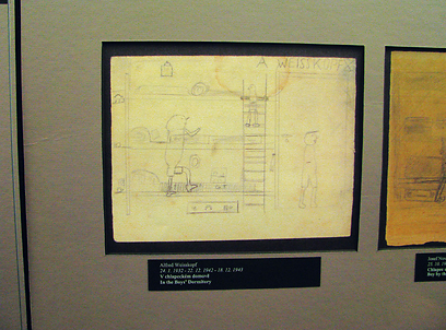 "במעון". תיאור מגורי הילדים, כפי שצייר הילד אלפרד שנספה ב-1943