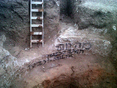 הגרפיטי שנתגלה על הכבשן בתל יבנה (צילום: אמוץ עגנון)