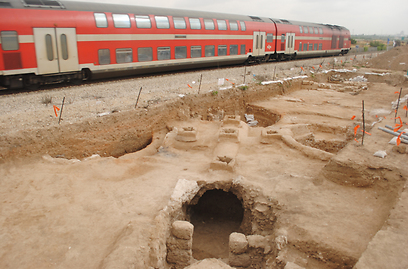 הכבשן נתגלה בעת חפירות הצלה עבור הרכבת (צילום: Skyview)