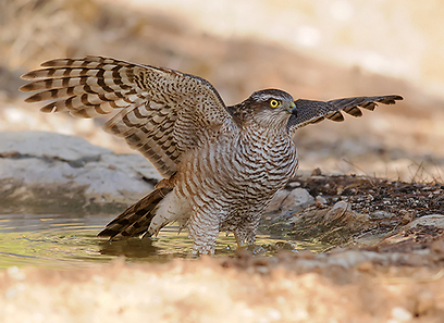 רגע בטבע: נץ מתרחץ במדבר וסנאי מרחף