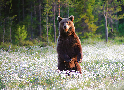 דוב חום עומד בשדה פרחים באירופה (צילום: אמיר איילון)