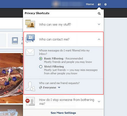 כאן תוכלו לקבוע מי יכול לפנות אליכם. אם אתם הורים לילדים, הגדירו עבורם Strict Filtering. זה יבטיח שחברים או חברים של חברים יוכלו לפנות אליהם, ויהיה פחות אפשרי עבור זרים ליצור עמם קשר. אם בא לכם להכיר אנשים סמנו Basic Filtering, זה יאפשר פניה רחבה יותר מהציבור. בנפרד מאפשרות יצירת קשר, תוכלו לבחור מי יכול לשלוח לכם בקשת חברות. כולם או חברים של חברים.
