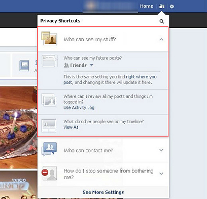 אפשרות חדשה-ישנה שצפה לאחרונה היא היכולת לראות את העמוד שלכם כפי שהוא מופיע בפומבי לאנשים שאינם חברים שלכם, או איך חברים ספציפיים רואים את העמוד שלכם. כך תוכלו לראות אם הגדרות הפרטיות אכן תואמות למה שחשבתן שהן. היכולת לראות כמישהו אחר שימושית במיוחד במצבים בהם מישהו מטריד אתכם או בסיטואציות שמחות יותר כמו ארגון מסיבת הפתעה.