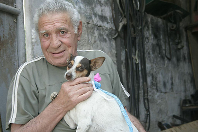 "היום אין לי לאן ללכת ולכן אני מתנחם בדולי, הכלבה שלי". צילום: אלה בשן