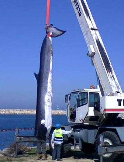 - הלוויתן מגיע לישראל ומורם חסר חיים במנופי ענק (פברואר 2008)