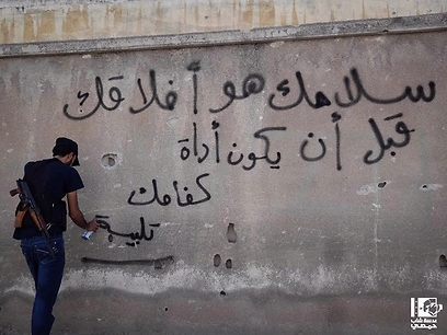"הנשק שלך הוא כלי משחק בידך לפני שהוא כלי מרד" צילום - "עדשת צעירי חומס".