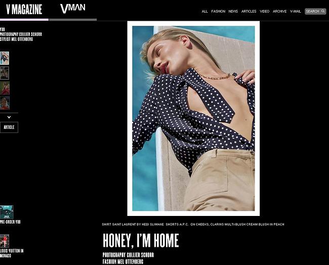 הדוגמנית הלוהטת הצטלמה למגזין V במגוון פוזיציות פרובוקטיביות, הורידה חולצה, חשפה פטמה ואמרה מה דעתה על תמונות עירום ולמה היא אוהבת להצטלם בהלבשה תחתונה