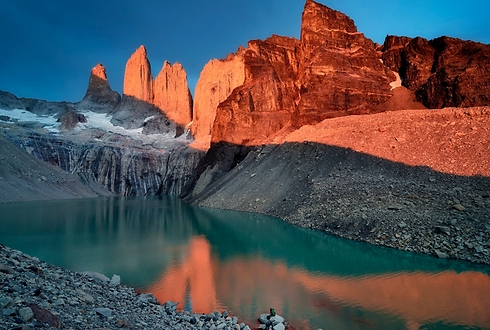 "זריחה מול מגדלי הגרניט של טורס דל פיינה, שהם גם הנקודה הכי גבוהה בפארק ומתנשאים לגובה של 3,050 מטר. כשצילמתי את התמונה לא שמתי לב לצלם הבודד שממוקם בתחתית התמונה, לאחר מכן כשהגדלתי וראיתי אותו הבנתי את מימד היחסיות שהוא הכניס, השבריריות של האדם מול הגודל והעוצמה של הטבע".