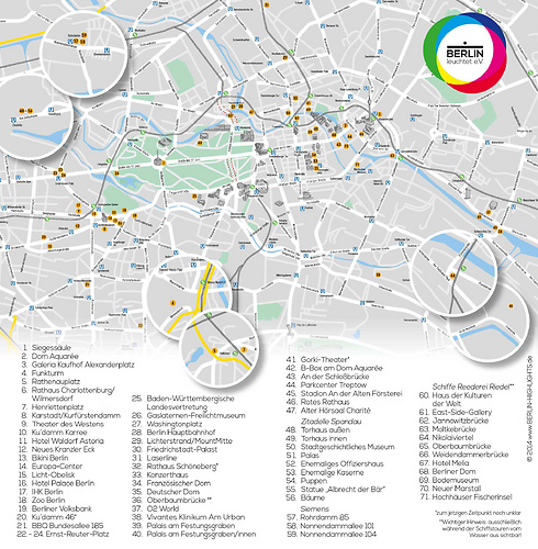 אם לא די בכך, במקביל נערך בברלין גם "פסטיבל האורות", על בסיס דומה למדי. פסטיבל זה נערך בפעם העשירית כבר בברלין. גופי תאורה מיוחדים מאירים בניינים ברחבי העיר החל ממחר (ו', 10.10) ועד 19 באוקטובר. בשבת (11.10) ייערך "לילה פתוח" במסגרתו אתרי התיירות בעיר יהיו פתוחים גם עד השעות הקטנות של הלילה, כשכולם מוארים - גם כן, על ידי אמנים נבחרים ומוכשרים.