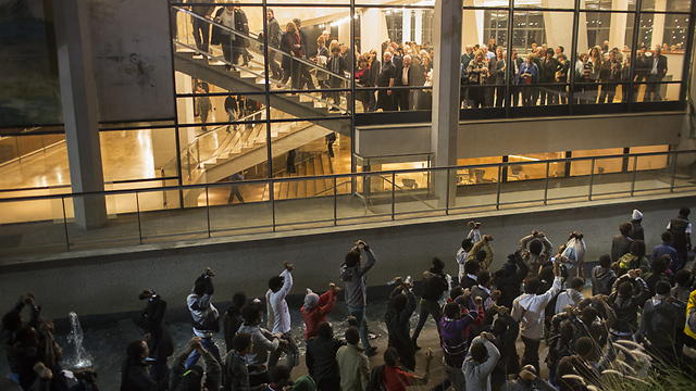 מבקשי מקלט צועדים ברחבת היכל התרבות. תל אביב, 21.12.2013. צילום: אורן זיו