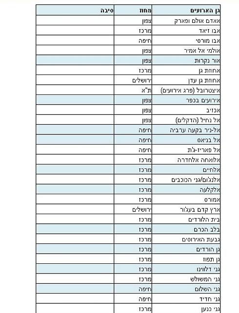 לרשימת גני אירועים הפועלים ללא היתר בניה ו/או שימוש של משרד הפנים - הקליקו על הטבלה. הרשימה מתעדכנת מעת לעת