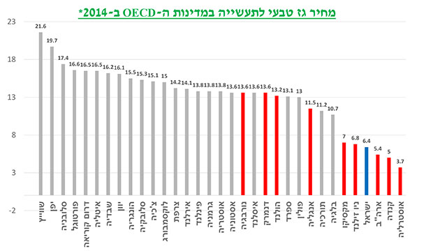 אלא שהשוואה למחיר במדינות ה-OECD לא מהווה בהכרח בסיס נכון להשוואה, כי לא לכל המדינות הללו יש מאגרי גז טבעי עשירים כמו של ישראל. אכן, בשווייץ משלמים 18 דולר ליחידת חום – יותר מפי שלושה מהמחיר בישראל. אבל לשווייץ אין גז והיא צריכה לייבא ולשנע אותו עד לתחנות הכוח שלה. ביפן שילמו ב-2014 17.1 דולר ליחידת חום, אבל יפן רוכשת את הגז שלה במצב צבירה נוזלי, בגלל מרחק השינוע הרב, וצריכה לשאת בעלויות ההנזלה וההגזה, בנוסף לעלויות השינוע.