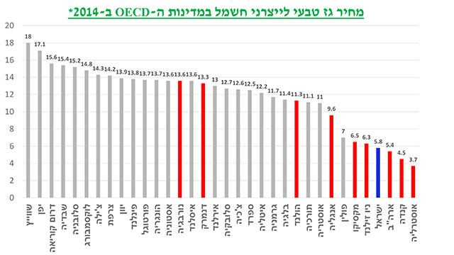 בישראל, לעומת זאת, מתכננת המדינה להפוך את הגז הטבעי למקור עיקרי לייצור חשמל. ועדת צמח, שעסקה בשאלה כמה גז יש לשריין לצורכי המשק הישראלי וכמה ניתן לייצא לחו"ל, עבדה על פי הנחה שבטווח הארוך 75% מהחשמל בישראל יוצר באמצעות גז טבעי. לא נכון ולא סביר שממשלה עם תכניות כאלה תשווה את מחיר הגז למחיר במדינה כמו דנמרק שמתכננת לייצר עד 2050 את כל החשמל שלה מטורבינות רוח.