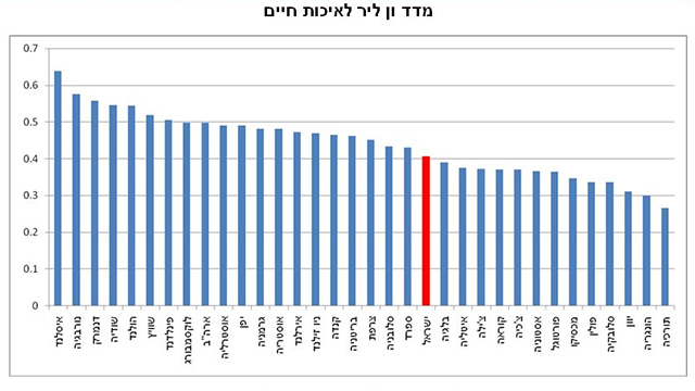 ישראל נמצאת במקום נמוך באיכות החיים בהשוואה למדינות ה-OECD, עם המקום ה-21 מתוך 34 מדינות, במיוחד בתחומי הדיור ואיכות הסביבה. כך קובע מדד חדש של מכון ון ליר למדידת ביצועי המשק והחברה.