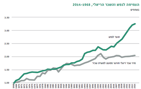 המשק צומח מזה קרוב לשלושה עשורים - אבל מי שנהנים מכך הם העשירים. כך עולה מהדו"ח השנתי שפרסם אמש (ד') מרכז אדווה, "תמונת מצב חברתית 2015". לפי הנתונים - מזה כ-25 שנה הגידול בתמ"ג לנפש אינו מלווה בגידול מקביל בשכר הריאלי, כאשר ב-2014, הפער ביניהם היה גדול מאי פעם.