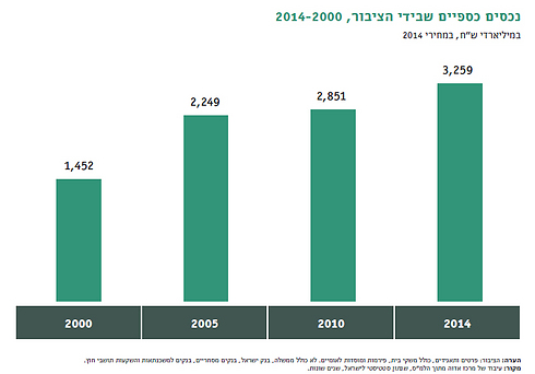 העושר בישראל צמח אף הוא בשנים אלו, עם גידול של פי 2.2 בנכסים הכספיים שבידי הציבור לסכום של 3.2 מיליארד שקלים. העוני, לעומת זאת, נותר על שיעור של אחת מכל חמש משפחות - מהגבוהים במדינות המפותחות. "אין ספק שהביטוי 'בידי הציבור' רחוק מלתאר את המצב", מצוין בדו"ח. "סביר להניח כי הנתח העיקרי מצוי בידי העשירון העליון ובפרט בידי המאיון העליון".