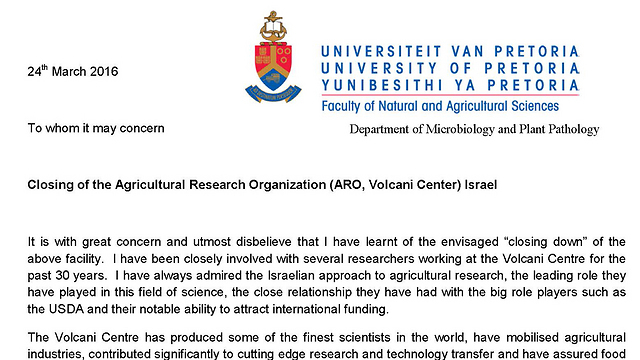 כך למשל, פרופ' ד"ר מריה רוזה פאיבה, מהפקולטה למדע וטכנולוגיה באוניברסיטת ליסבון, כתבה, כי "לצערי, גיליתי כי ישנו סיכוי לכך שמדינת ישראל תפצל את המכון ותפחית משמעותית את הפעילות שלו. לעניות דעתי, המהלך ישפיע באופן שלילי על הביצועים המצוינים של המכון ויכלול השלכות מיידיות ברמה הכלל-לאומית, באשר לפעילות מול חקלאים ויצרנים מצד החוקרים במכון.