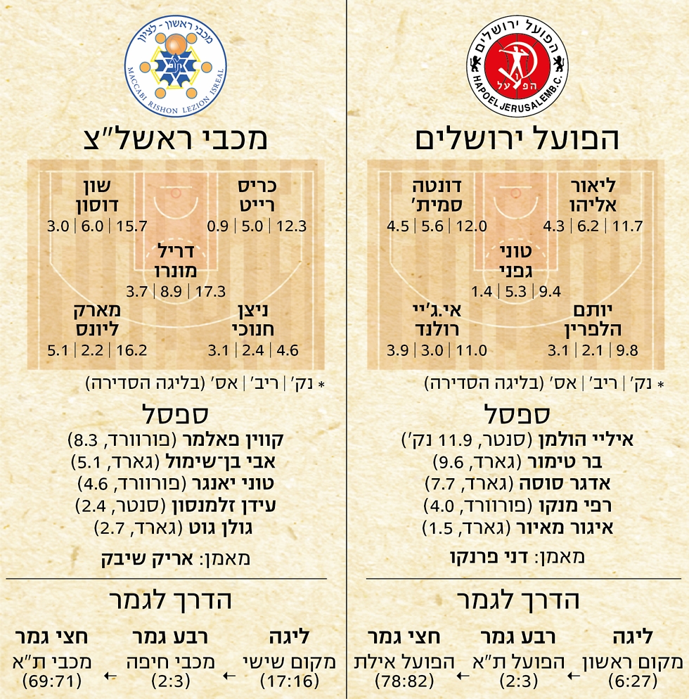 אחרי עונה ארוכה, יש שיגידו מדי, כולל מחלוקת לגבי שיטת הפיינל־פור – הפועל ירושלים ומכבי ראשל"צ מגיעות הערב (21.05, פיס ארנה) לקרב על כל הקופה. אליפות שנייה ברציפות לאדומים של דני פרנקו או צלחת היסטורית לכתומים של אריק שיבק.