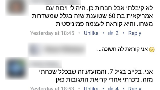 הפוסט פורסם בראשון בבוקר ונכון לכתיבת הטור - קיבל מעל 300 תגובות. כ 250 מתוכן תגובות של "אני" שמוכיחות ללא צל של ספק שאין קשר לגילך, צבעך, אמונתך, עיסוקך, כולן קיבלו כזו תמונה. וכ 50 תגובות של גברים שרובן ככולן תגובות המומות מהכמות המטורפת של מקבלות הודעות כאלה. חלקם אף התנצלו בשם המין הגברי.