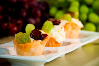 כוסות פילו במילוי קרם וניל וענבים מזוגגים