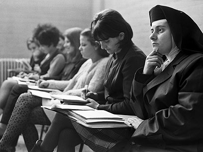 נזירה בהרצאה באוניברסיטה, 1950 (צילום: משה-גרוס, סטודיו קרן אור)