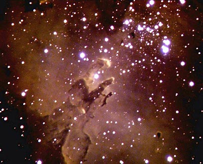 עמודי הבריאה, במרכז ערפילית הנשר שבקבוצת נחש (צילום: מצפה הכוכבים בגבעתיים)